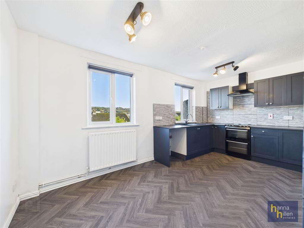 Lino flooring. High & low level units. Extractor fan. Electric hob & oven. Stainless steel sink. Plumbed for washing machine. Radiator. - REAR HALLWAY: