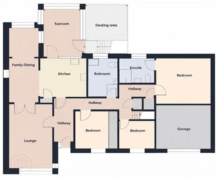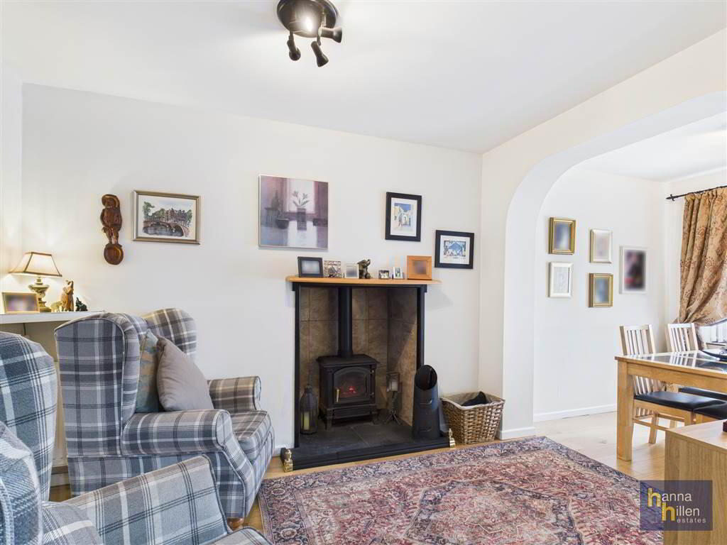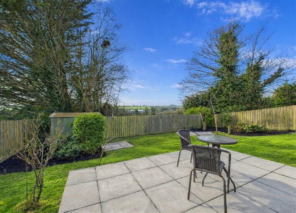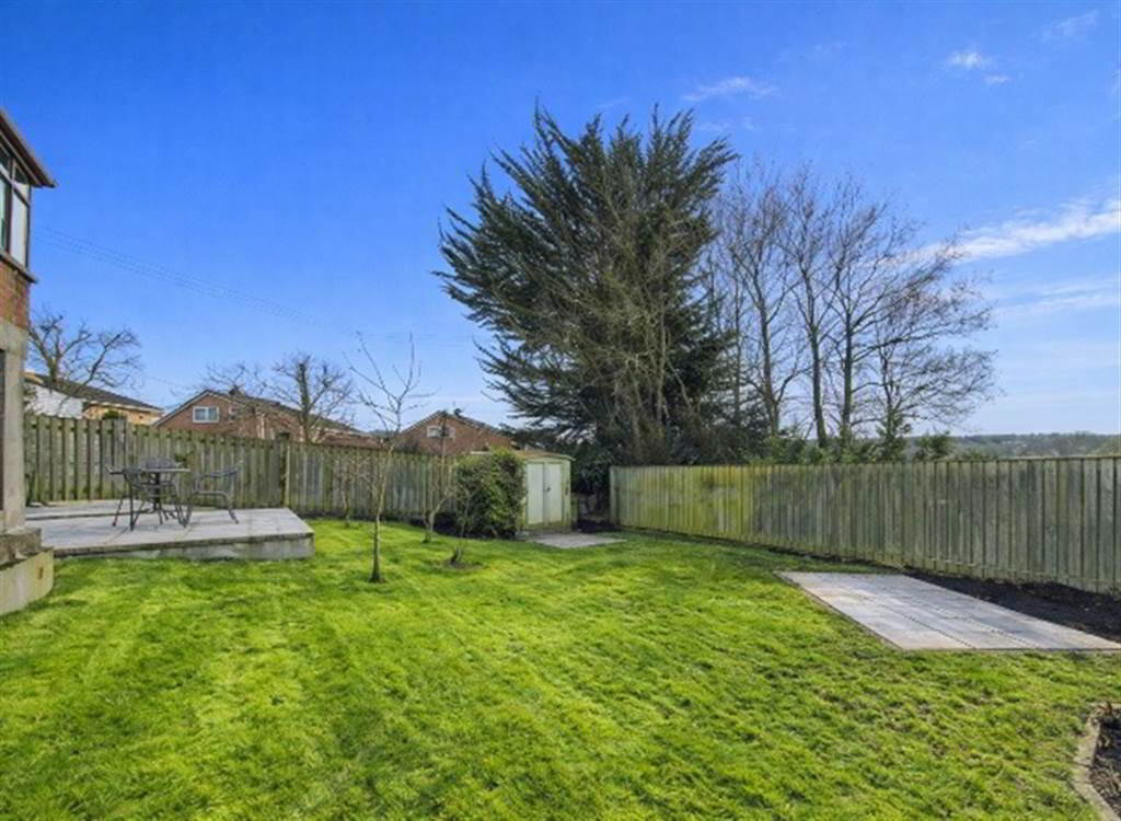 - Garden to front and rear, laid in lawn with trees and shrubbery. Enclosed rear garden with patio and raised decking area. Tarmacadam driveway. Stores. Outside lights and tap.