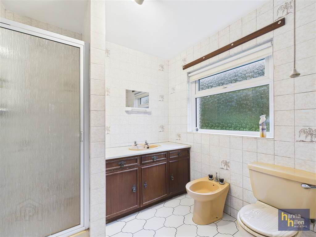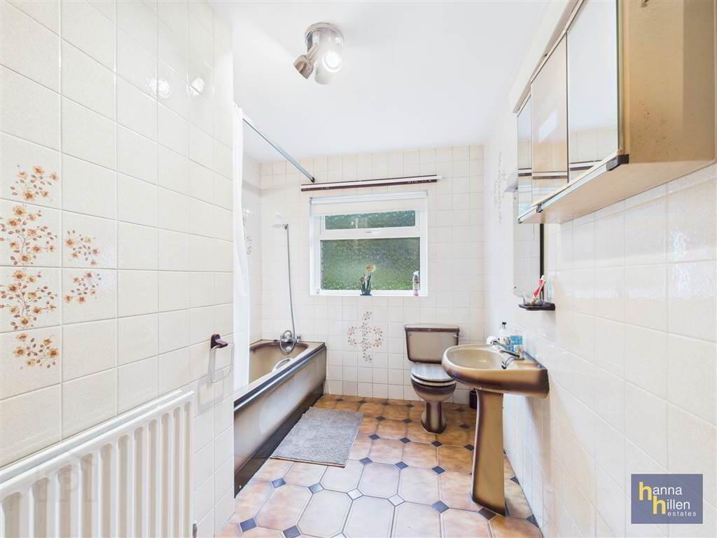Coloured suite. Tiled walk-in shower. Radiator. Tiled walls & floor.