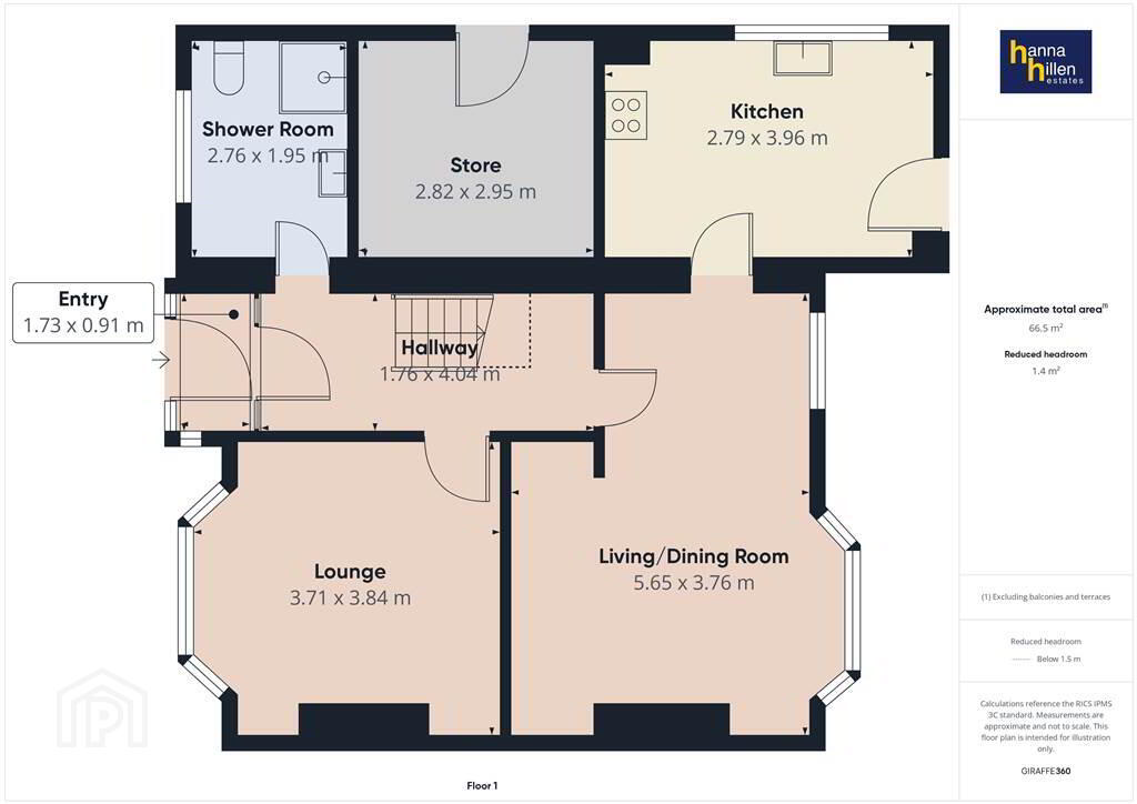 High & low level units, tiled between. Single drainer stainless steel sink unit. Integrated hob, oven & dishwasher. Plumbed for washing machine. Extractor fan. Radiator. Tiled floor.