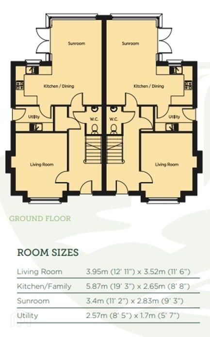 Porcelain floor tiling to kitchen/dining area, utility room, sunroom (where applicable), rear hall, bathroom, ensuite and WC