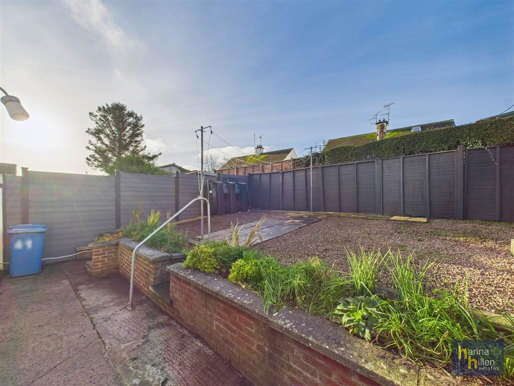 To the front and rear, the property benefits from an enclosed yard with a tarmac driveway. A concrete area is located at the back door, with steps leading up to a raised section that opens onto a shared paved area.