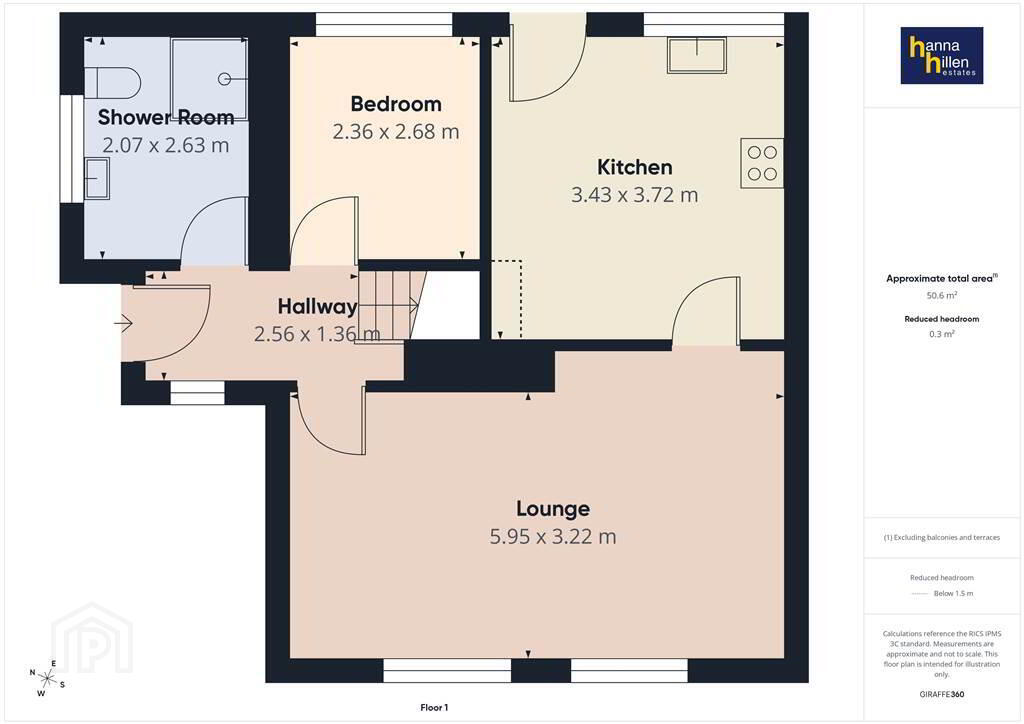 White suite. Tiled walk-in shower. Extractor fan. Radiator. Tiled floor.